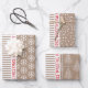 Snowflakes, Christmas trees, brown kraft stripes Wrapping Paper Sheet