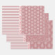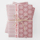Snowflakes, Christmas trees and stripes dusty rose pink Wrapping Paper Sheets with red Christmas wishes. One sheet displays a cute pattern of snowflakes and stripes on dusty rose. The second features snow and the third white trees. There also is the text "Merry Christmas" in red on all sheets. Personalise it with your text.