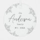 Personalised Christmas family ornaments feature elegant trendy family name script and snowflakes in light grey, black and white, optional family photo on the back, modern and simple.