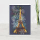 This beautiful Paris, France Eiffel Tower Christmas card design features an artistic styling of the Eiffel tower. The Eiffel Tower is illuminated and glowing surrounded by beautiful sky colors and snowflakes.