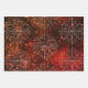 This elegant wrapping paper set features three flat sheets of burned red, and orange colour slightly distressed style of design. It features beautifully crafted snowflakes, Christmas trees, and Hearts. Each sheet has a different pattern but they have similar colours to complement each other.
