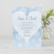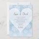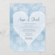 A winter season wedding invitation. An exquisite icy blue background with delicate, intricate snowflakes and a white heart symbolising the warmth of your love amid the winter's cold beauty. Perfect for seasonal celebrations or destination weddings to a ski lodge.