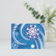This design features assorted snowflakes swirling around in the wind. A blue backround was added. A layer of snow was added for flair. Send this postcard from anywhere you travel that has winter weather. Customise with all your own information. This is a colourful postcard and tells a story.