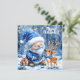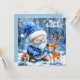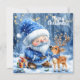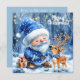 In a serene forest dusted with snow, a cheerful Santa Gnome in a blue snowflake coat shares a gentle moment with a reindeer adorned in a matching scarf and festive antlers. Glowing lights twinkle through the trees, and colourful gifts nestle in the snow, adding a touch of magic to the peaceful scene. This heartwarming illustration captures the spirit of kindness, wonder, and winter enchantment.
