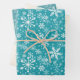 Snowflakes, leaves, buds, trees, teal, Christmas Wrapping Paper Sheet