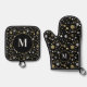 Snowflakes on Black Gold Monogrammed Christmas Oven Mitt & Pot Holder Set