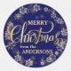 Snowflakes on Blue Gold Letter Merry Christmas Classic Round Sticker