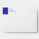 Customizable Christmas envelope with a blue interior with snowflakes. Fill out your return address information to make your Christmas mailing list easier.