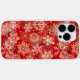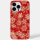 Snowflakes pattern. Seamless pattern with fluffy white snowflakes on a red background.