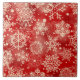 Snowflakes pattern. Seamless pattern with fluffy white snowflakes on a red background.
