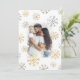 Snowflakes Photo Gold Silver Script Christmas Holiday Card