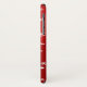 Custom Christmas iPhone case featuring winter white snowflakes on red silky background. A fun and festive way to protect your iPhone during the Holiday season!