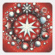 A beautiful red background surrounded by baubles and snowflakes in pop art style
