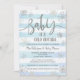 Baby it's cold outside! Celebrate your baby shower in the winter season with a snowflake winter themed invitation: blue and white stripes and faux silver glitter snowflakes and confetti.