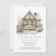 Gather your favourite people with this Christmas dinner invitation featuring a glowing winter cottage surrounded by festive greenery. The painted illustration style blends rustic farmhouse charm with elegant script details. Personalise with your party details and set the tone for a warm and joyful celebration.