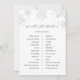 Bridal shower game card featuring a watercolor border of silver snowflakes. A fun way to interact with shower guests.