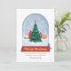 Delight your family and friends with this adorable snowglobe greeting card. It features a decorated Christmas tree in the middle of a snowy village.