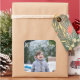 Snowing Christmas greetings square stickers with customisable photo and text - you can add your photo, family name and year.