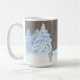 "Snowing Pine Trees Deer Christmas Winter Rustic Wood Family Coffee Mug." Weathered soft cocoa brown stained wooden barn boards are paired with elegantly hand painted artwork that was created on canvas by internationally licensed artist and designer, Audrey Jeanne Roberts. The snowy mountain wilderness forest of pine trees are rendered In soft tones of blue and white, while a family of deer along with the text, "May all your Christmases be white," and your family name personalised. You can change all of the text to any saying your would prefer. Copyright.