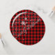 Festive snowing script Merry Christmas card with red buffalo plaid background. This card doubles as a hanging ornament: it comes with a hole punch guide along the top at the back of the card. Punch out the hole with a hole punch and add pretty ribbon, rustic jute or colourful yarn before mailing them out.