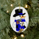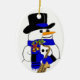 A meadow Snowman dressed in a top hat, blue scarf and mittens, is ready with his saxophone to play a tune.