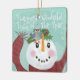 This cute little friendship of snowman and its little friend, the birdie are enjoying a breezy winter’s day. The cute bird brought the snowman special holly leaves and a wreath to make him look more festive since he lost his top hat. The snowman’s scarf billowing in the wind almost resembles arms and makes it fun to look at. This ornament will look so cute on a tree for any snowman or bird enthusiast or just because it’s cute. Happy Holidays!