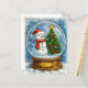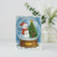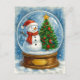 A delightful watercolor illustration featuring a smiling snowman in a red hat and scarf beside a beautifully decorated Christmas tree inside a snow globe. Snowflakes dance around them, capturing the magic of the holiday season. Perfect for spreading joy, warmth, and festive cheer to family, friends, and loved ones this Christmas.