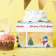 Cute snowman Christmas holiday wrapping paper for kids with Merry Christmas wish. The design features cute snowman with blue hat and red scarf, with candy cane in his hand. Christmas trees have yellow stars.
