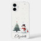 A charming snowman paired with a beautifully decorated evergreen, set amidst a peaceful snowfall. This minimalist holiday design captures the warmth and elegance of the winter season.
