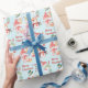 The cute pattern on this festive Christmas wrapping paper for kids contains images of snowmen, a penguin, a fox, and an adorable bear holding a heart. Your custom text is in four fields. This is a perfect paper for grandparents to give to grandchildren. Or just change the custom text and make it from Mum & Dad, or Aunt & Uncle.