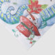 Whimsical,colourful original pastel painting in blue white red colours,snowman and penguin playing violin in winter snow with red flowers,flourishes.by Bulgan Lumini (c)