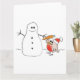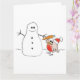 Cute robin gives a snowman the best Christmas gift, a carrot for his nose!