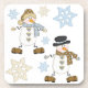 This festive seasonal drink coaster features a pair of snowmen, one dressed in a stocking cap and the other in a top hat, and both with neck scarves and mittens. The snowman pair is placed on a background of white, with flurries of light blue and cream colored snowflakes swirling around them. *Thanks to Real Deal Clipart for the clipart used to create this design.