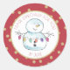 Festive red and gold "made especially for you " sticker featuring my lighthearted watercolor snowman holding a string of colourful holiday lights. Personalise text as preferred.
