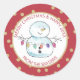 Festive red and gold "Merry Christmas and Happy 2018 " sticker featuring my lighthearted watercolor snowman holding a string of colourful holiday lights. Personalise text as preferred.