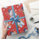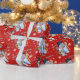 Snowman and tinsel Christmas wrapping paper in red. A wonderfully seasonal design featuring a fun snowman character. See my other Christmas characters on giftwrap and lots more products.