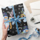 Snowman and tinsel Christmas wrapping paper in black. A wonderfully seasonal design featuring a fun snowman character. See my other Christmas characters on giftwrap and lots more products.