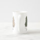 Enjoy your cup of tea in this beautiful bone china mug of a snowman in the Christmas trees, text is "Baby It's Cold Outside"