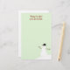 Blank snowman stationery with custom greeting at the top. Write a holiday newsletter to friends and family on pale green writing paper. Red script at the top and a fun snowman with hat at the bottom.