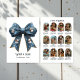 Celebrate your favourite memories with this festive flat holiday card featuring a charming blue bow adorned with snowmen and snowflakes. The front highlights “What a Year!” while the back includes a customisable year in review photo collage and captions. A cheerful way to share highlights and holiday wishes with family and friends.