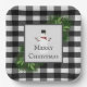 Add rustic charm to your celebrations with this Black and White Snowman Buffalo Plaid Paper Plates, a festive essential for your Christmas party supply. These sturdy plates feature a delightful snowman wearing a top hat and scarf, surrounded by lush Christmas greenery and holiday botanical accents. Set against a bold buffalo plaid and gingham pattern backdrop, the vibrant typography displaying "Merry Christmas" brings holiday cheer. Perfect for serving treats at your gatherings, these plates blend style and functionality to elevate your seasonal events with a cosy, festive vibe.