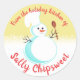 Super cute winter snowman chef wearing a chef's hat, holding a wooden spoon, with snowy background "from the kitchen of" stickers or "homemade by" labels for your gifts of Christmas holiday foods, sweets, and treats.