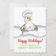 Cute snowman chef wearing a chef's hat, serving up a snowball platter on this "from the kitchen of" Christmas holiday card for gifting your list with your homemade foods, sweets, and treats, or use as a culinary Christmas card for a personal chef, catering, restaurant or other food, cooking, or culinary pros.