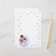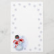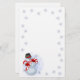 Fun holiday stationery with snowman holding a candy cane. Background is framed with falling snowflakes.