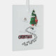 The cutest Christmas ornament featuring a snowman, footprints in the snow, a mailbox and pretty green tree