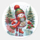 Christmas sticker is shown with a cute festive holiday snowman print.