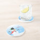 Snowman coaster featuring a white snowman wearing a black hat with a green holly leaf and a red scarf and who is enjoying the snow. © Morning 6