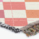 A quality printed throw has its advantages. This is a much finer weave throw than its loopier cousins, and though lighter, it is worth the investment for custom room accessorizing. The back is much prettier than the typical brown, and the fringe on the long sides very vivid, the selvage nicely done. Before photographing, I washed the throw in cold water, delicate, with a thicker woven throw the same size. On tumble dry low, this throw was dry in half the time as the other. This is a very practical quality if you use throws for furniture covers or to wrap up in frequently. The sleekness of the fabric makes it a great layer for accenting or protecting without the feeling of sitting on too much stuff. Perfect for napping or when you feel a light chill coming on. The color printing is beautiful and on this fabric, matched the design and color of my Photoshop image. This is an advantage for blending room fabrics and colors. The fringe on the short sides prints the colors from the design image and therefore varies from the side fringe. I streaked a white fractal line through the plaid pattern to give the illusion of weaving. This printed as crisp as an illusory thread, and put some white in the short side fringe, showing another advantage of print vs loomed- for artistic purposes, line lines, detail, and color integrity can be planned and preserved. My loomed throws have color limitations and more of a needlepoint texture. Print throws reproduce an exact image. The throw felt a little stiff straight out of the package, but this went away in the first delicate wash. Of course I searched the wash water for ink or bleeding and there was none.