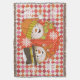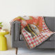 Snowmen Couple Dots and Argyle holiday throw, so pretty and colourful, features a bright pink, white, orange, and red argyle background with an orange circle with white dots and has a smiling snowman couple with a hat, scarf, carrot nose, and snowflakes!