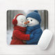 Snowman Couple Hugging in Winter Forest Mouse Pad